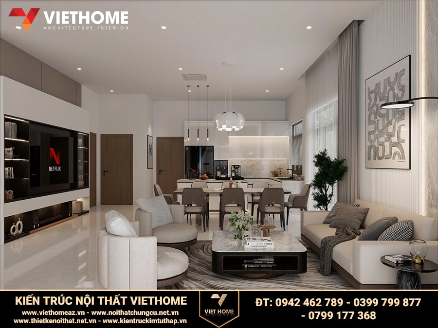 VIETHOME hướng đến phong cách thiết kế nội thất tối giản hiện đại, kết hợp giữa công năng, ánh sáng và chất liệu tự nhiên để tạo nên không gian sống hài hòa, sang trọng mà vẫn gần gũi. Sự khác biệt nằm ở khả năng cá nhân hóa thiết kế theo nhu cầu, thói quen và gu thẩm mỹ của từng gia chủ giúp mỗi ngôi nhà trở thành tổ ấm có dấu ấn riêng.